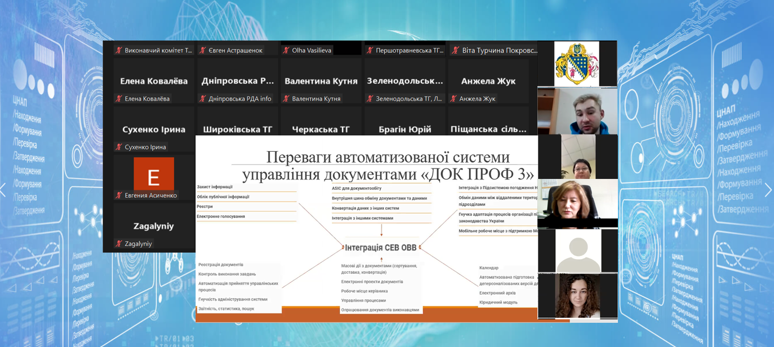 У Дніпропетровській області було проведено тренінгове навчання за темою «Використання автоматизованої системи управління документами ДОК ПРОФ 3 при роботі з електронними документами». Навчання проводилося в період з 29 листопада 2021 року до 3 грудня 2021 року включно.
