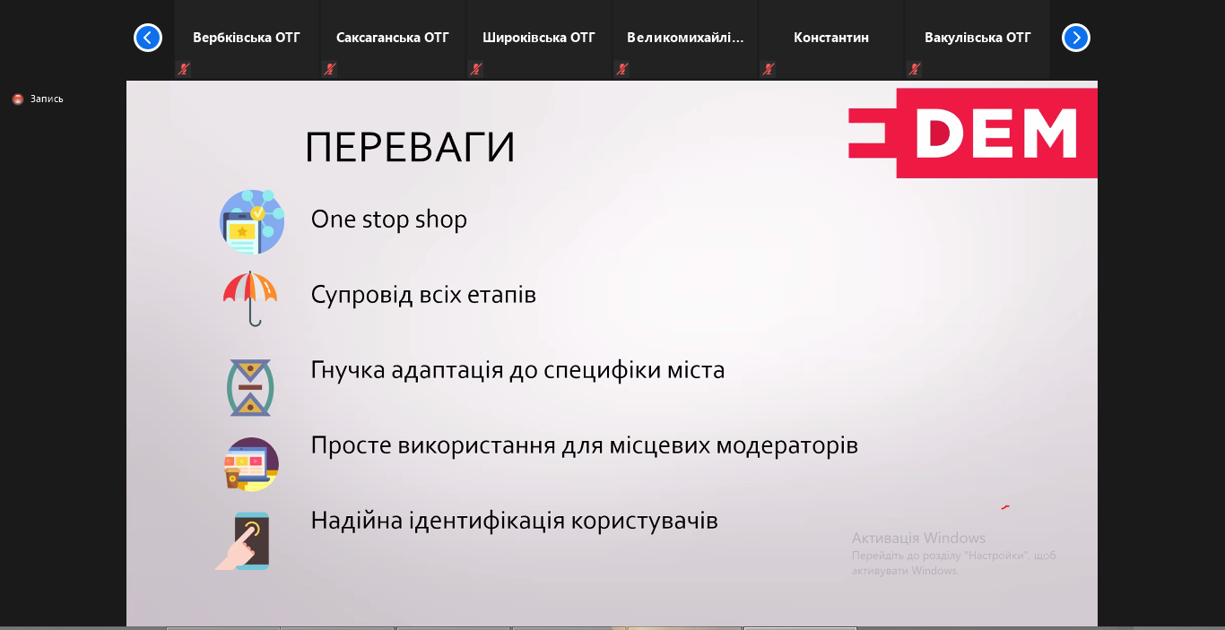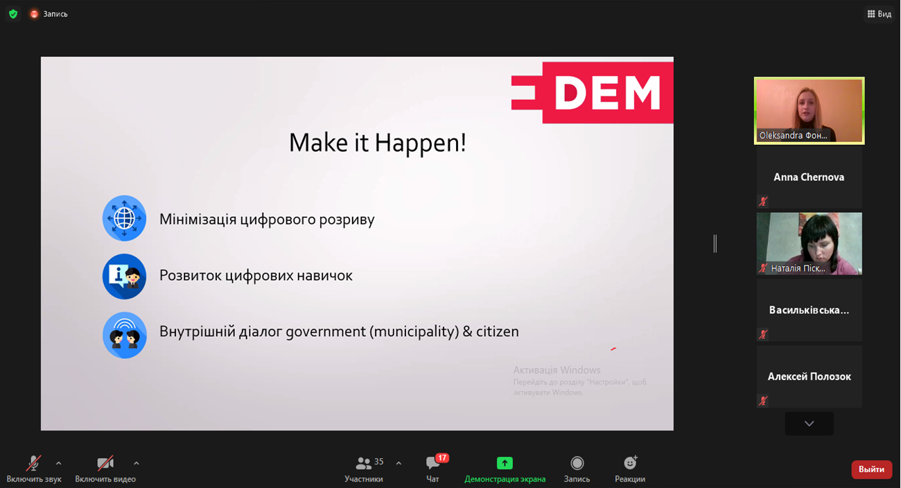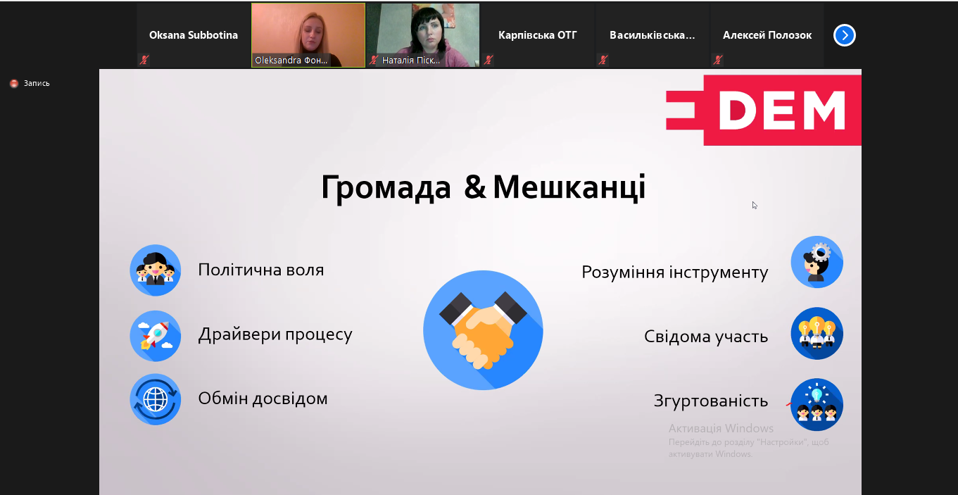 Однією з проблем сучасного суспільства залишається несформоване розуміння у громадян отриманого результату від використання запропонованих інструментів впливу та комунікацій із владою. Тож, за ініціативи ДніпрОДА, координатори програми EGAP провели вебінар на тему «Підключення громад до платформи «E-DEM»».